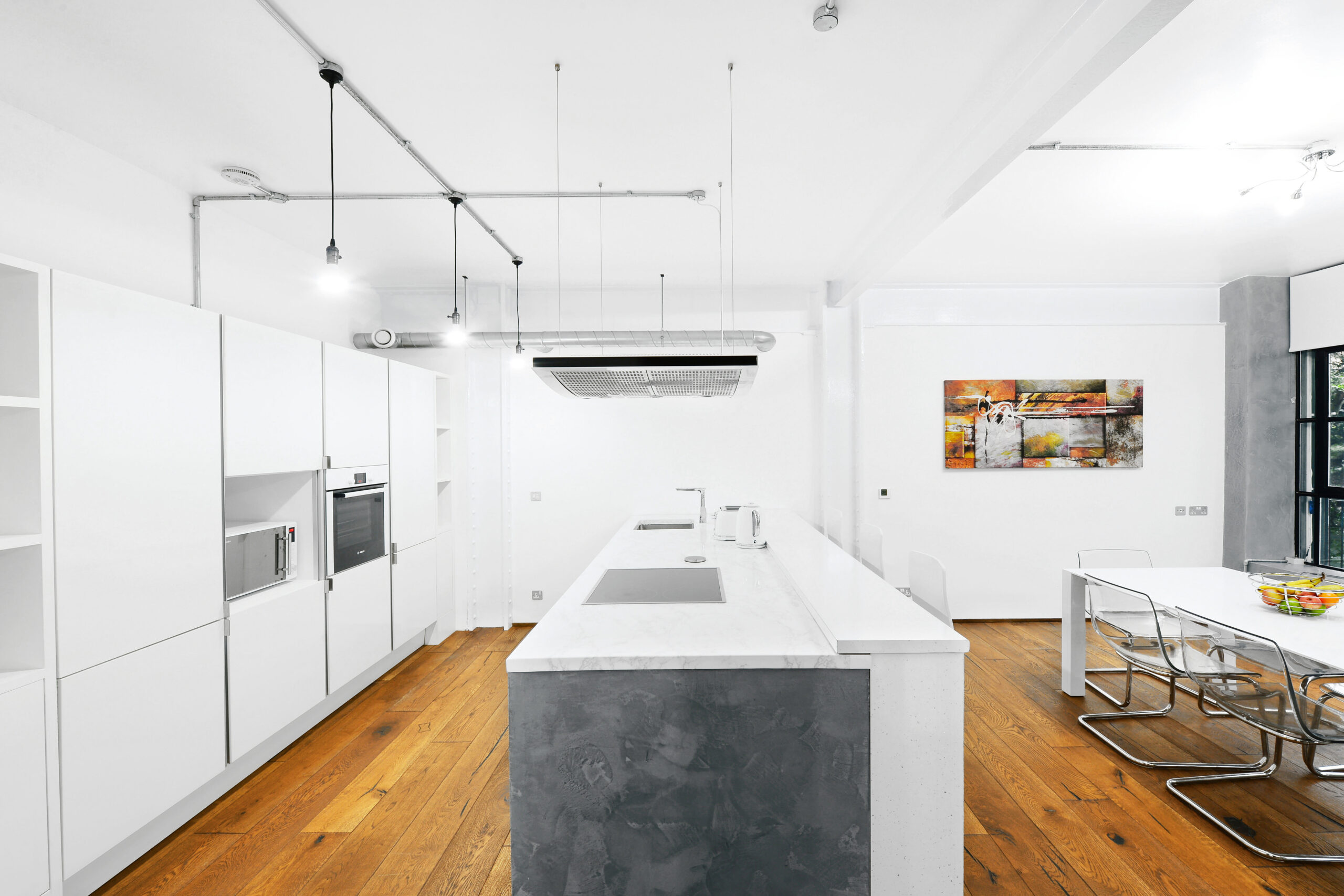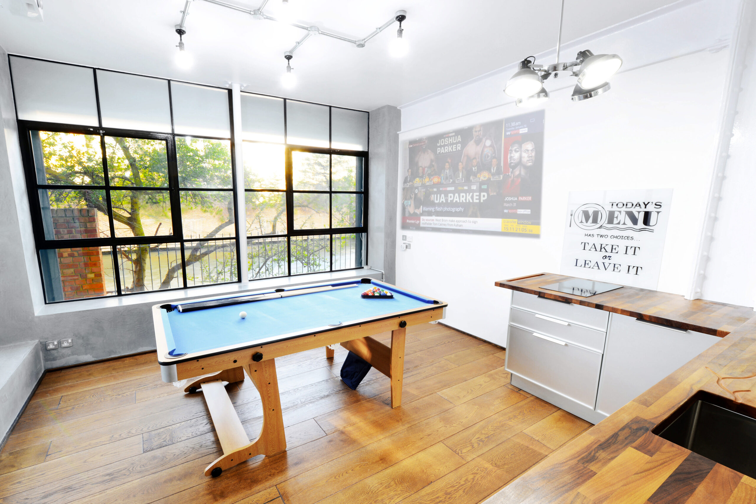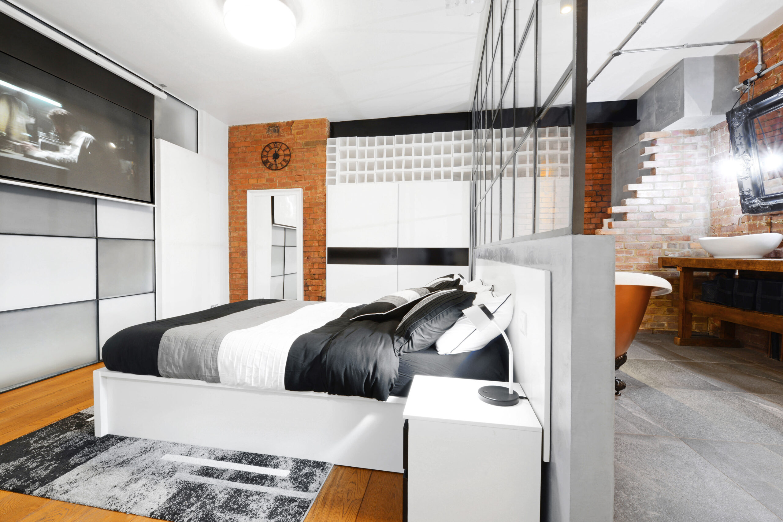 Welcome to S1 Apartment, a chic New York loft-style penthouse in Canary Wharf, London. Ideal for photo and video shoots, events, and overnight stays. This 1700 sq ft, 3-bedroom open plan space boasts stunning canal views and industrial-chic decor with exposed brick.